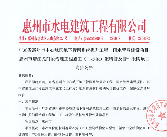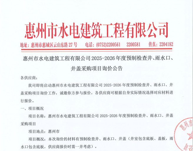惠州市水電建筑工程有限公司成立于一九六四年四月,隸屬惠州市水務(wù)集團(tuán)有限公司,是一家國有綜合性施工企業(yè),主營水利水電工程、房屋建筑、市政工程等施工業(yè)務(wù)。公司擁有水利水電工程施工總承包一級(jí)、建筑工程施工總承包一級(jí)、市政公用工程施工總承包一級(jí)、公路工程施工總承包三級(jí),公路路基、路面及建筑裝修裝飾專業(yè)承包二級(jí),環(huán)保工程、機(jī)電安裝、河湖整治、輸變電工程專業(yè)承包三級(jí)等經(jīng)營資質(zhì)……